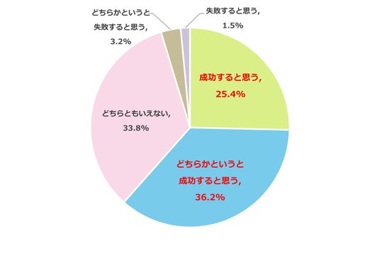 新学期に新しいことにチャレンジしたいと回答した中高生823名を対象に、新たに始めるチャレンジは成功すると思うか質問したところ、61.6%が「成功すると思う」(成功すると思う:25.4%、どちらかというと成功すると思う:36.2%)と回答しました。この結果から、中高生の多くが自身を「やればできる子(YDK)」と認識しているように、新たなチャレンジに対しても前向きで、自信を持っていることがうかがえます。