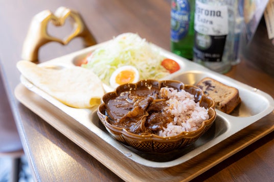 レッドチリで人気のナンと一緒に山形村短角牛を楽しめる給食プレート。