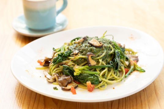 久慈市特産のほうれん草と山形村短角牛を合わせたミートソース。