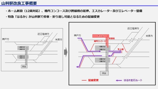 ・特急「はるか」が山科駅で停車・折り返し可能となるよう配線を変更します