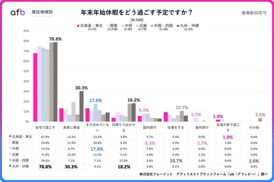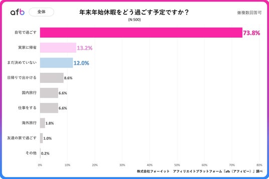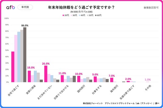 アフィリエイトプラットフォーム「afb(アフィビー)」< https://www.afi-b.com/ >の開発運用をおこなう株式会社フォーイットは、全国の20代~60代までの男女500人を対象に年末年始に関するアンケートを実施し、年代別等の特徴についてまとめました。