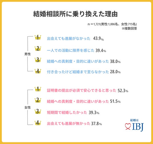 より真剣な出会いを求めて結婚相談所へ乗り換える傾向