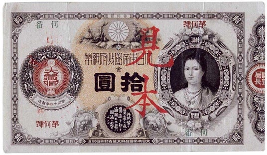 明治10年、得能良介紙幣局長は新しい紙幣の製造方法について大隈重信大蔵卿に伺いを提出しました。その中で、偽造防止には写真彫刻が一番の方法であり、外国では多くの紙幣が国王の写真を入れているとし、明治14年から政府が発行する紙幣(改造紙幣)には神功皇后が描かれることになりました。