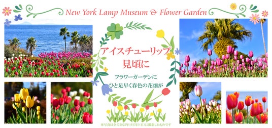 ニューヨークランプミュージアム&フラワーガーデンでは、「アイスチューリップ」が見頃となり、これから迎える厳冬期を前に、早くも春色の花々に包まれています。