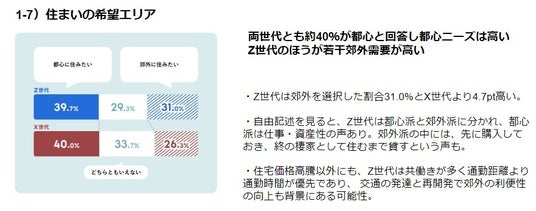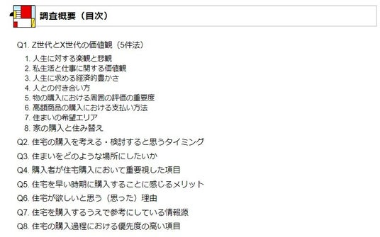 そこで、本調査により、20歳~29歳のZ世代と45歳~59歳のX世代※2とに分け、世代間での住宅や消費行動に対する意識について調査を行い、その動向の変化と今後の住宅市場における変化を探りました。