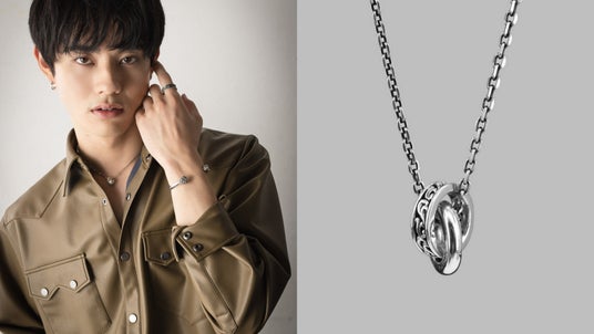 キャンペーンの中でピックアップしているダブルリングネックレスを、いま注目の俳優『前田 拳太郎』が4種のスタイリングで提案。