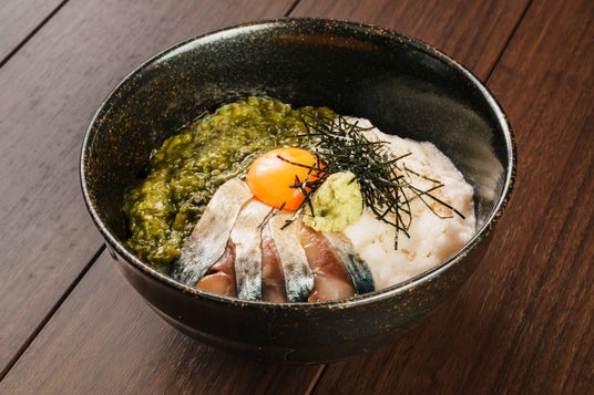 メニュー名:三陸メカブと漬け鯖のネバトロ丼 味噌汁・漬物付