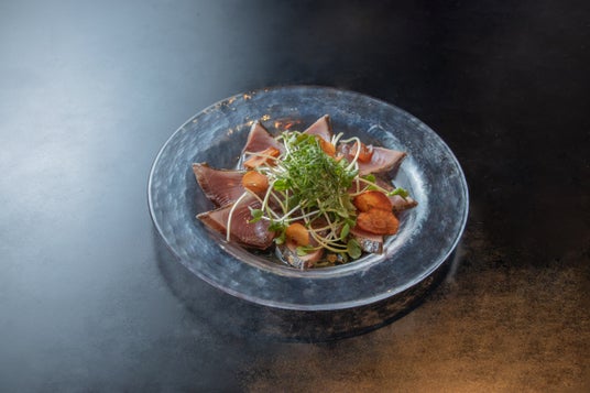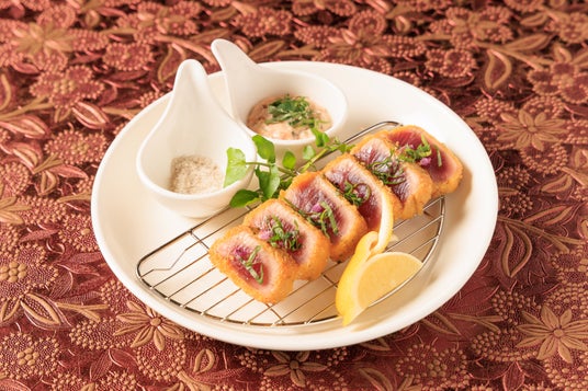 メニュー名:宮城県気仙沼トロカツオのレアカツ 梅肉タルタル添え