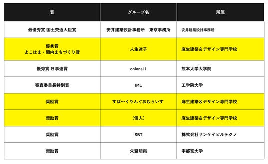 受賞作品8賞のうち、3件を麻生建築&デザイン専門学校の学生が受賞しました。