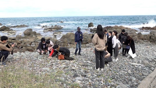 本ツアーでは、9月開催のワークショップで確認した内容で男鹿半島・大潟ガイドの会のガイドが入道埼灯台の歴史を説明したり石焼料理に使われる「溶結凝灰岩」の地層を見学し実際に石に触れたりと、観光コースのひとつとして入道埼灯台を中心にツアー参加者をご案内しました。最後には「石焼料理」を召し上がっていただき、約90分のツアーを終了しました。