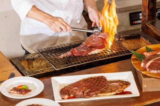 肉焼いてます!ライブキッチンで焼き立ての蒜山ジャージー牛ステーキが食べ放題です
