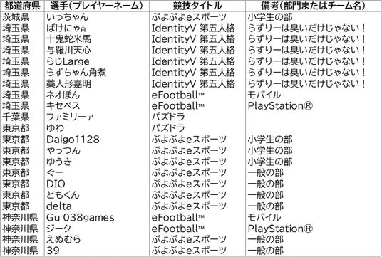 競技タイトル: 「IdentityV 第五人格」、 「eFootball(TM)」、 「パズドラ」、 「ぷよぷよeスポーツ」