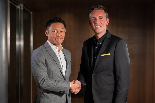 ロータス・カーズ ヨーロッパ、アジアパシフィック、中東、アフリカ プレジデント&CEO ダン・バルマー氏(写真右)と、八光エルアール株式会社 代表取締役 池田 浩八(写真左)