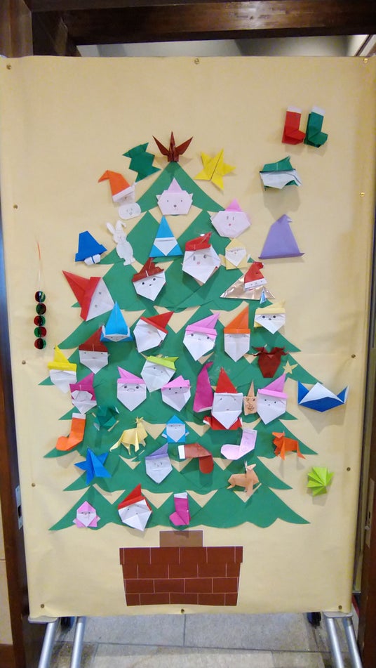 折り紙ツリー期間中は、さくらであい館内に折り紙クリスマスツリーを設置し、折り紙とクリスマスにちなんだ折り方の紹介シートをご用意。