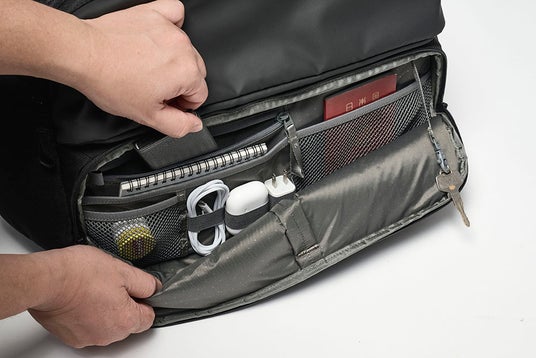 ■フロントパネル: ガジェットを整理できるオーガナイザージップポケット。