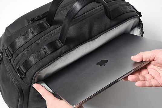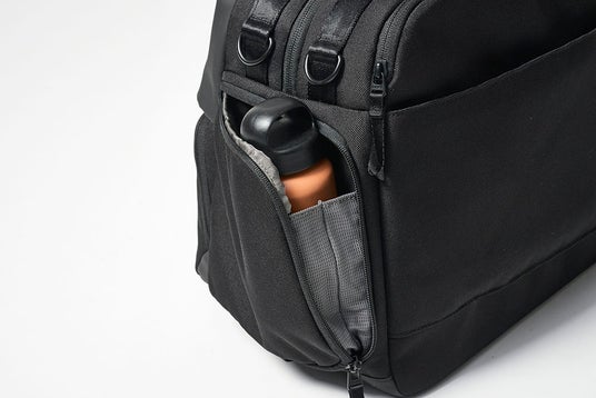 44.4Lの大容量を誇るダッフルバッグは、1泊以上の旅行や荷物が多いお出かけ、スポーツに最適です。機内持ち込み可能なサイズの設計で、手持ちだけでなく、肩への負担を軽減する肉厚パッド付きショルダーストラップを備え、キャリーバーに取り付け可能なデザインのため、シーンに応じた快適な持ち運びを実現します。収納力も抜群で、大きなメインコンパートメントに加え、16インチまでのノートPCが収納できるサブコンパートメントを搭載。外装には、以下の便利なポケットが充実しています。