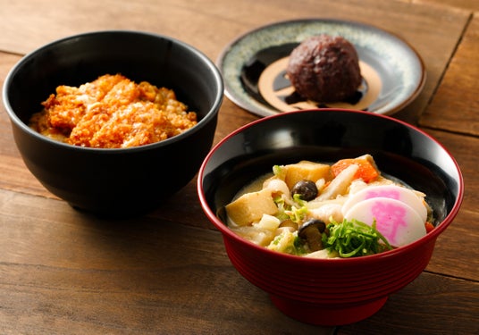 画像左:選べる豚汁うどんしあわせセット:920円(税込)~/ミニぼた餅なし:870円(税込)~