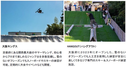 また、本イベントはプロスノーボーダーの岡本圭司氏が全体を監修するのに加え、パーク内に設置する「雪上のジャンプ台(以下キッカー)」は関西最大のサマーゲレンデ大阪キングス、「滑ったり乗ったりするためのレールや箱状の遊具(以下ジブ)」は2023年に大阪にオープンしたジブ専門の人工芝スキー&スノーボードオフトレ施設HANGOUT(ハングアウト)が監修します。関西エリアのスキー・スノーボードオフトレーニング施設のプロらが作り上げるパークは初級者から上級者もお楽しみいただけます。