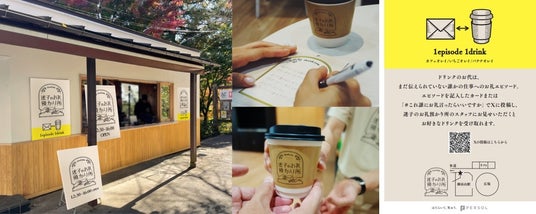 「迷子のお礼預り所」カフェでは、誰かの仕事に対する行き場のない感謝をカードに記入いただく、もしくは「#これ誰にお礼言ったらいいですか」とともにXにポストいただくことで、「カフェオレイ」「いちごオレイ」「バナナオレイ」のうちお好きなドリンク1点と交換できます。