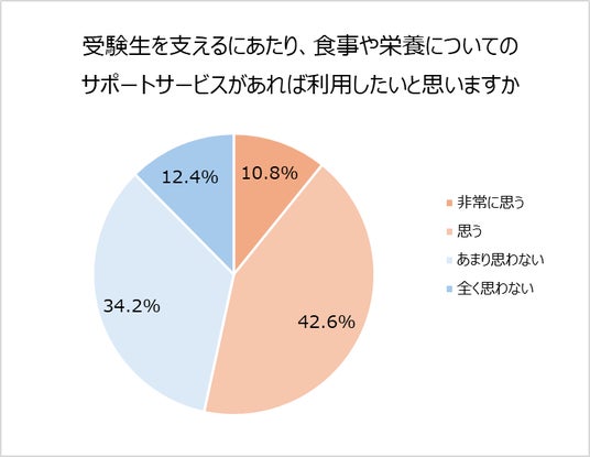 受験生を支えるにあたり、食事や栄養についてのサポートサービスがあれば「利用したい」と半数以上の親が回答しました。具体的なサポート方法を求めている親は多いと考えられます。