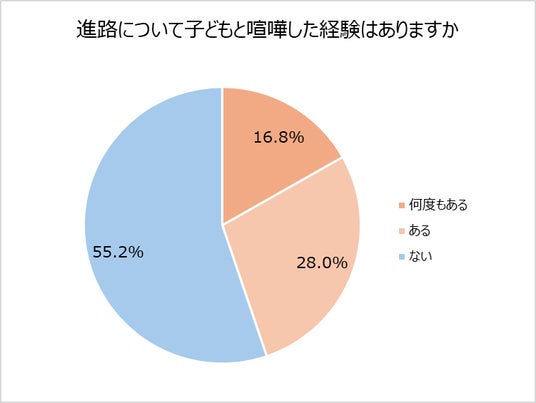 コミュニケーションがうまくいかないと、喧嘩に発展してしまうことも。約6人に1人の親が、進路について子どもと喧嘩した経験が「何度もある(16.8%)」と回答しました。