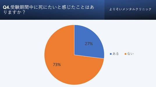 また、約7割の受験生は実際に受験うつを経験しており、そのうち3割の方は「死にたい」と感じたことがあることが明らかとなりました。