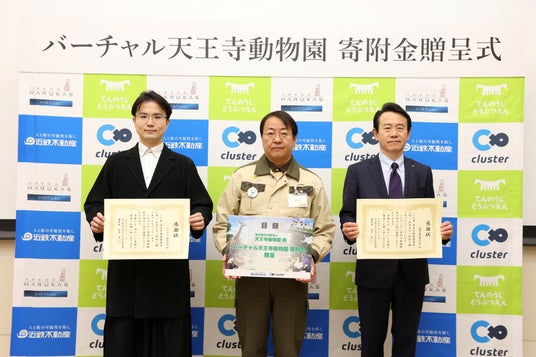 国内最大級のメタバースプラットフォーム「cluster」を運営するクラスター株式会社と近鉄不動産株式会社が「バーチャル天王寺動物園」での売上金全額を「天王寺動物園」に贈呈しました