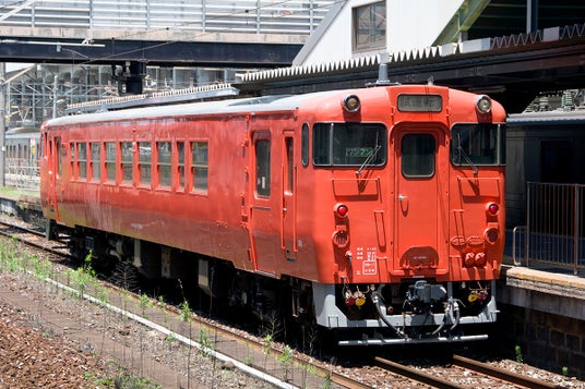 都圏色)と鹿児島車両センター所属のキハ40 8038(一般気動車標準色)の2両を連結し、日南線、