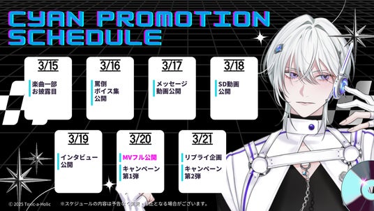 『Toxic-a-Holic』キャラクターソング第2弾のMV公開を前に、シアン(CV:土岐隼一)が歌う曲の一部を公式Xと公式YouTubeにて3月15日より先行公開していきます。