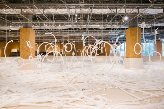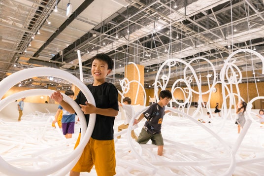「大きなお皿×ミナフォームマルマル」プロジェクトから生まれた大型遊具「ヌードルおばけ」がPLAY! PARKに登場しています。奇妙な動きをする麺のおばけたちは、ミナフォームマルマルでできています。