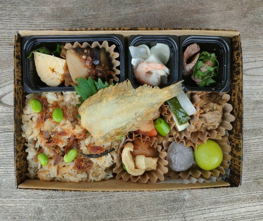 ・内容:約300年伝統製法を守り続ける米酢専門店による、小鯛のささ漬、鯖へしこ、若狭カレイ、若狭牛など若狭の食材を使用したお弁当。「天橋立チーズケーキ」とお茶がセット