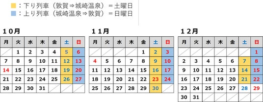 (3)運転期間 2024年10月5日(土)~12月22日(日)の間の土日