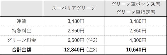 ※ただし主な旅行会社窓口でのグリーン車ボックス席(2名用・4名用)およびスーペリアグリーン車の