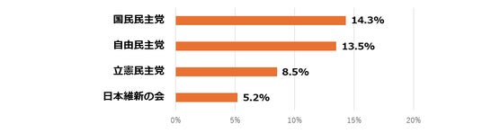夏の参院選は波乱必至!?参院選比例投票先は国民民主14%、自民13%、立憲8%、維新5%