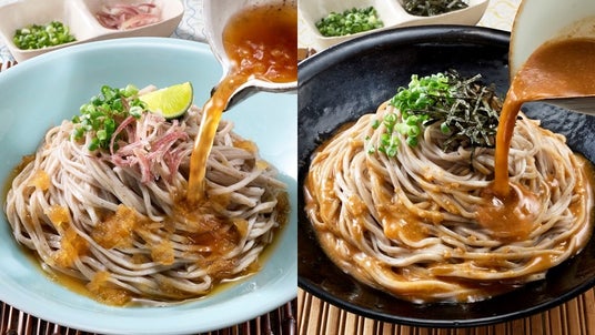 今回、つけつゆ以外の楽しみ方として、薬味入りのおろしだれ・ごまだれを提案することで、手軽にいつもと違う気分でそばを楽しんでいただきたいと思います。