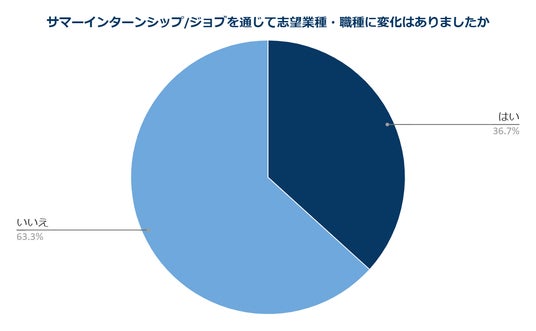 サマーインターンシップを通じて、志望業種や職種に変化があった学生は4割弱でした。