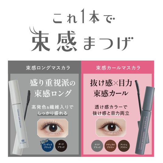 「キングダム 束感マスカラ」は、累計出荷数100万本※1を超え大ヒット中。目力を最大限にひきだす「束感ロングマスカラ」2色(ダークブラック、インディゴブラック)と、目力×抜け感仕上げの「束感カールマスカラ」3色(クリアブラック、ナチュラルブラウン、アッシュブラウン)の展開になります。