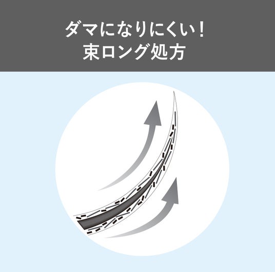 【Point.2】 ダマになりにくい!束ロング処方長短のファイバーをミックス配合することで、まつ毛にピッタリと密着し、ダマなくするんと伸びる。