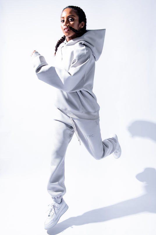 SYNC. SET UP 黒/グレージュスタイル、快適性、万能性を備えた、ラグジュアリーなラウンジウェア。 同系色のロゴを組み合わせたオーバーサイズのスウェット。 自宅でも外出先、機内移動やトレーニングジムでも、スタイリッシュな装いを提供します。