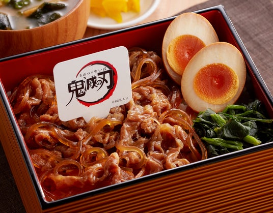 大人気アニメ「鬼滅の刃」とのコラボキャンペーン第1弾は11月19日よりスタートし、大好評をいただいております。待望の第2弾では、「炎柱 煉獄杏寿郎(れんごくきょうじゅろう)のよもやよもやのうまい牛鍋弁当」、「音柱 宇髄天元(うずいてんげん)の華麗にド派手なチーズカレー」など、登場キャラクターの世界観溢れるコラボメニューが新たに4種類登場します。