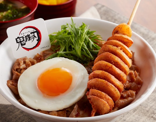大ヒットした劇場版「鬼滅の刃」無限列車編で、煉獄杏寿郎が「うまい!うまい!」といくつもおかわりしていた牛鍋弁当をジョイフル風にアレンジ。甘辛いすき焼き仕立ての牛肉がご飯と相性抜群。煮卵も忠実に再現しました。もりもり食べて心を燃やそう!