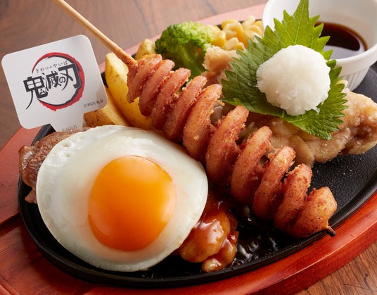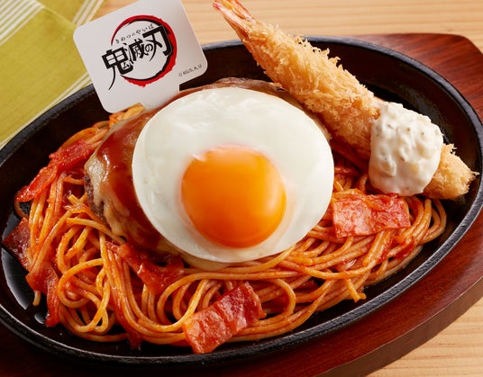 大きな体で巨大な鉄球を振り回す悲鳴嶼をイメージしたグリルは、スパゲティナポリタンにハンバーグ、海老フライに目玉焼きと、人気メニューを豪快に盛りつけた圧倒的なボリューム感!