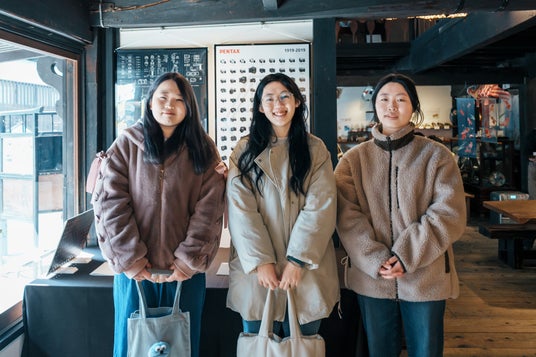(左から、安田女子大学 現代ビジネス学部 国際観光ビジネス学科2年 谷口花穂さん・箱崎渚さん、3年 豊田祥子さん)