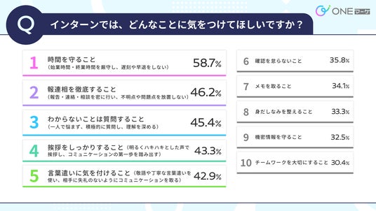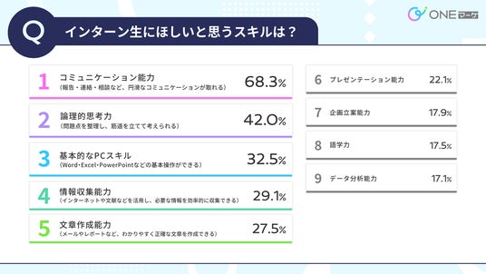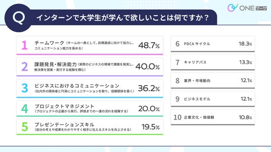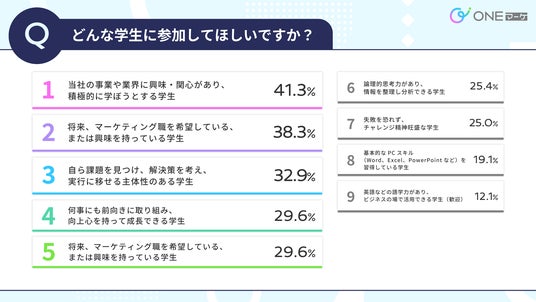 【ONEマーケ、社会人の大学生インターンに関する調査を実施】大学生インターンに求めるのはスキルよりもポテンシャル? - 企業が求める「優秀な人材」を再定義する結果に
