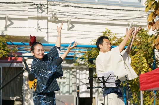 くるくるチャーミー[大西健太郎、富塚絵美]|「しゃボンおどり」作曲・振付(昼の部)東京藝術大学卒業生によるアーティストユニット。ダンス、歌、作曲、音響などそれぞれの得意分野をもつ個性的なメンバーが集い、地域のお祭りや結婚式、パーティでのパフォーマンスなどで活躍。