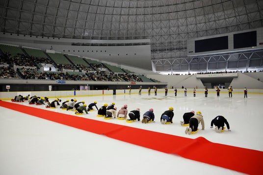 賞品争奪!参加全施設対抗「氷上そり競争」が行われ、客席からも各施設代表の選手ちに大きな声援がかけられ会場が一体化!この日一番の大きな盛り上がりをみせた。