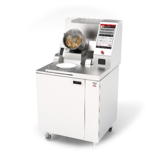 大阪王将には、調理の速さとクオリティを、1級から3級までの3つのレベルで審査する調理検定試験制度があります。全国でたった17名しかいない難関レベルの調理1級を持つ熟練職人の鍋さばきを、様々な角度から研究。彼らと変わらないクオリティを安定して提供できるように、加熱温度、加熱時間、鍋の回転スピード、回転方向まで細かく調整して完全コピー化した『I-Robo』の導入を始めています。大阪王将鷺沼駅前通り店では、『I-Robo2』を導入。また、ボタン一つで床の自動洗浄も可能に。過酷な厨房の環境改善、人手不足の解消につながります。