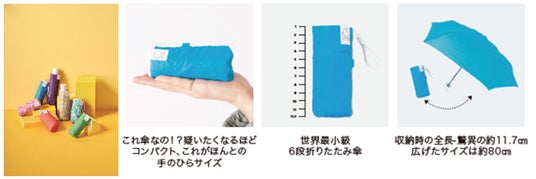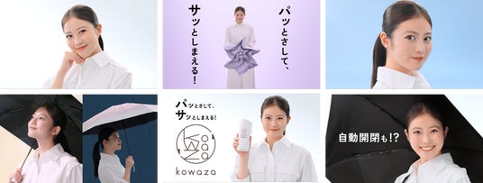 今年は、累計20万本以上を売り上げた“3秒でたためる折りたたみ傘”「urawaza」シリーズから小型の晴雨兼用傘「kowaza(コワザ)」を新発売いたします。また、昨年大ヒットとなった“世界最軽量級”晴雨兼用傘の「マジカルテック プロテクション」、“世界最小級”の折りたたみ傘「ミラクルテック」からは、さらに便利さを追求した新しいラインナップを展開いたします。