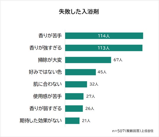 最後に、これまで使用したなかで「失敗した」と思った入浴剤について聞きました。