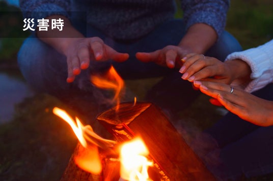 災害時に電気やガスが止まった場合、火を起こすことで調理や加熱、飲料水の蒸留、さらには暖をとったり器具の殺菌などが可能です。